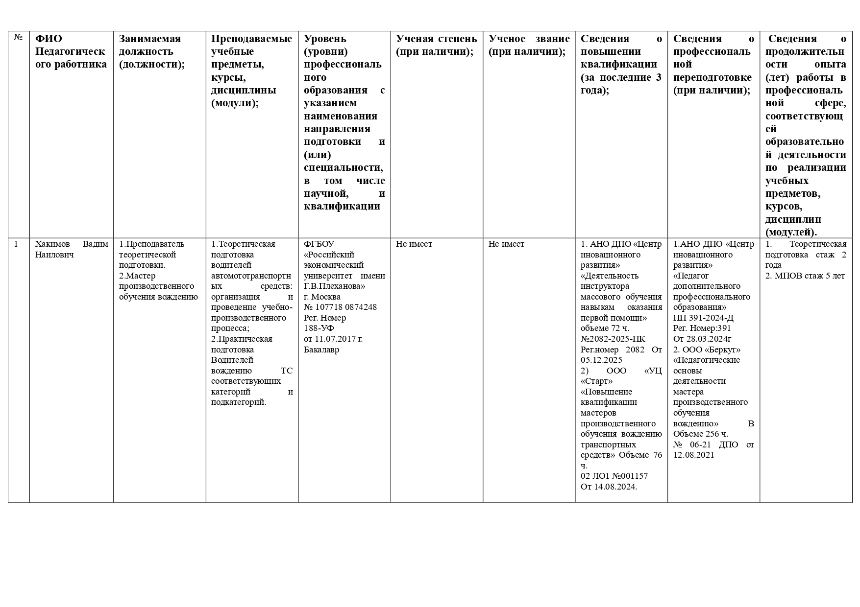Педагогический состав