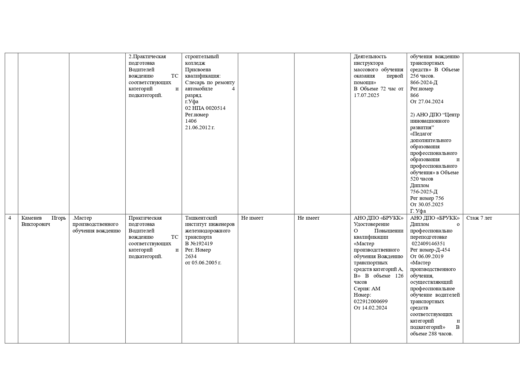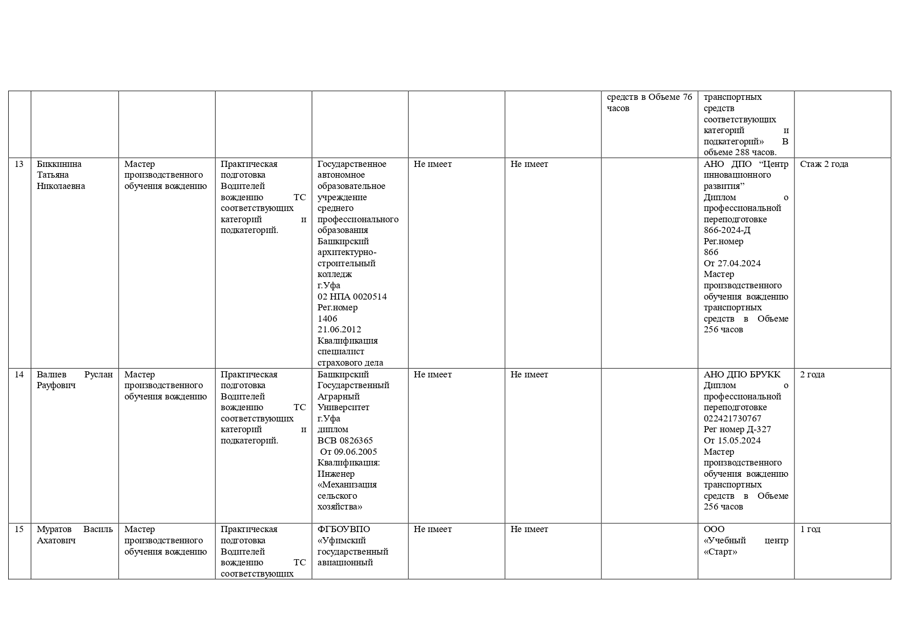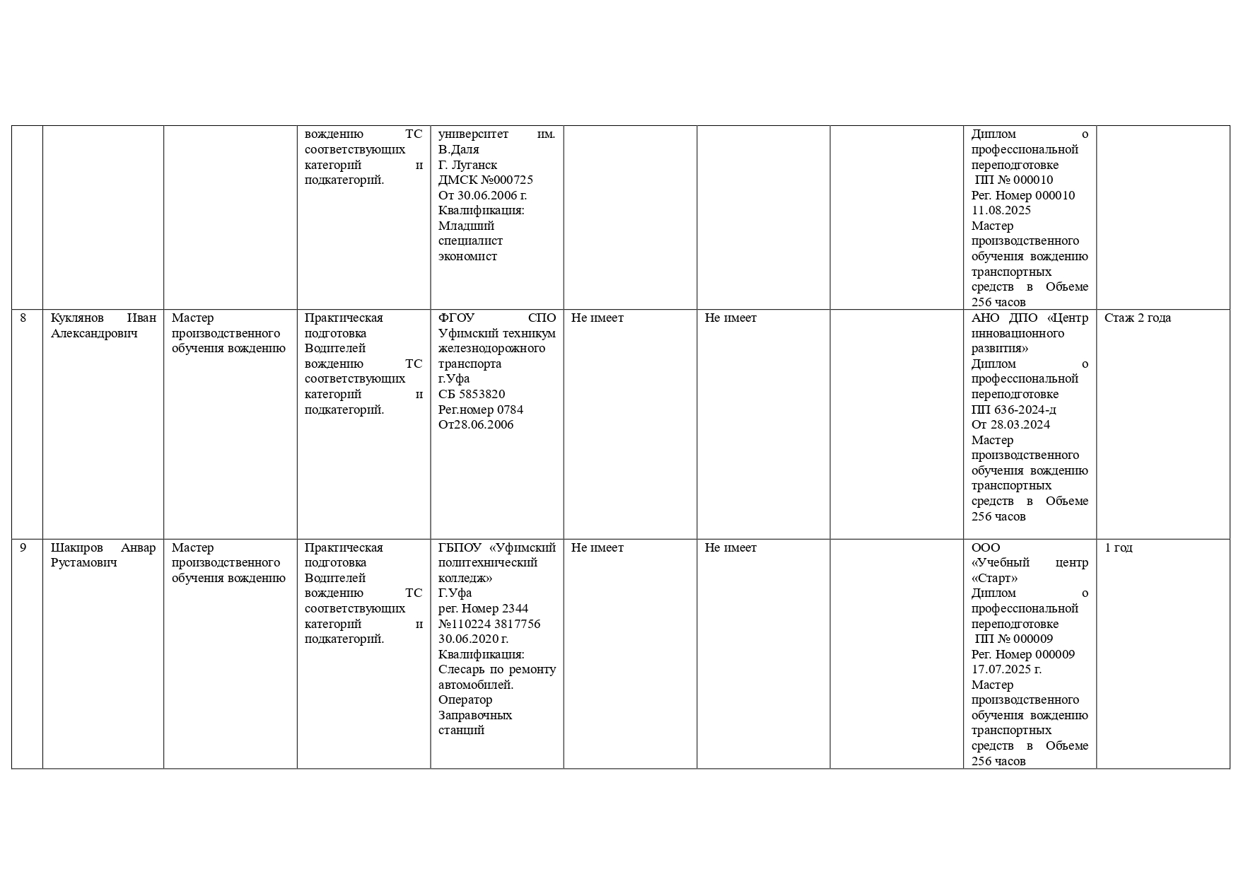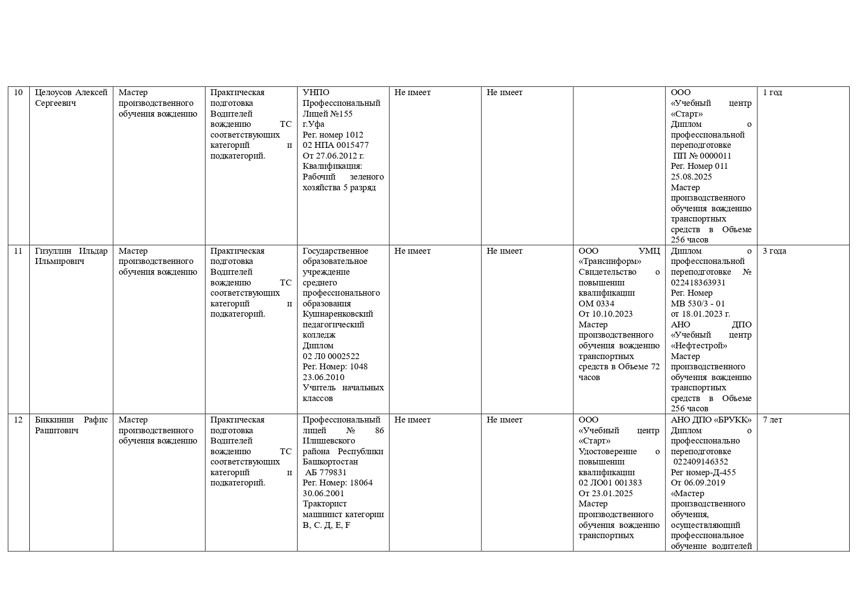 Сведения о повышении квалификации (за последние 3 года)